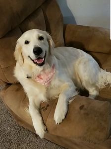 He has family from Romania, Australia, and Poland! He is a British/English style Golden retriever with champion bloodlines! He has lines from the 2nd top sire in the UK of all time and of all breeds. He is a beautiful light cream color.